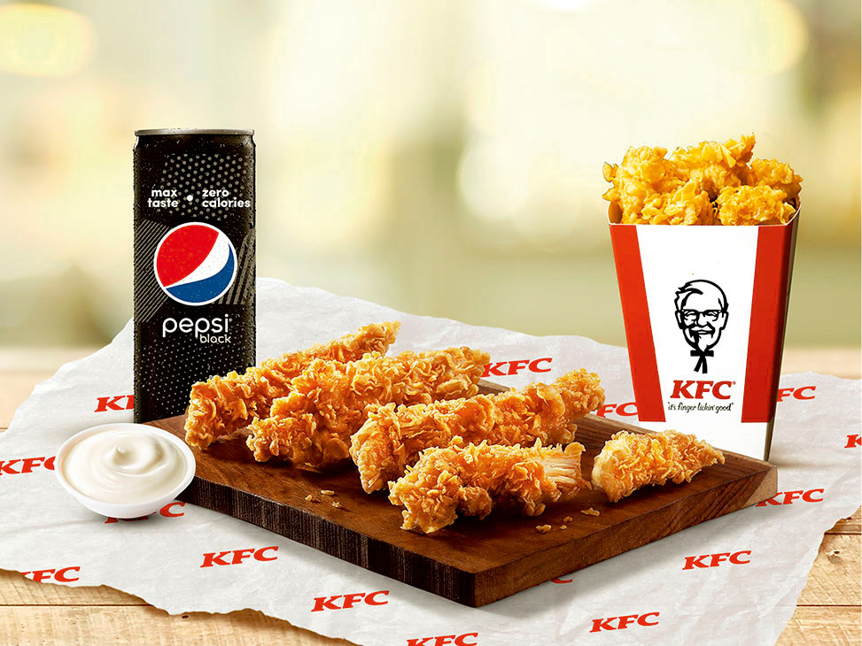 Go solo with 1 pc Hot & Crispy, 3 strips, Medium Fries & a chilled Pepsi Black [serves 1]