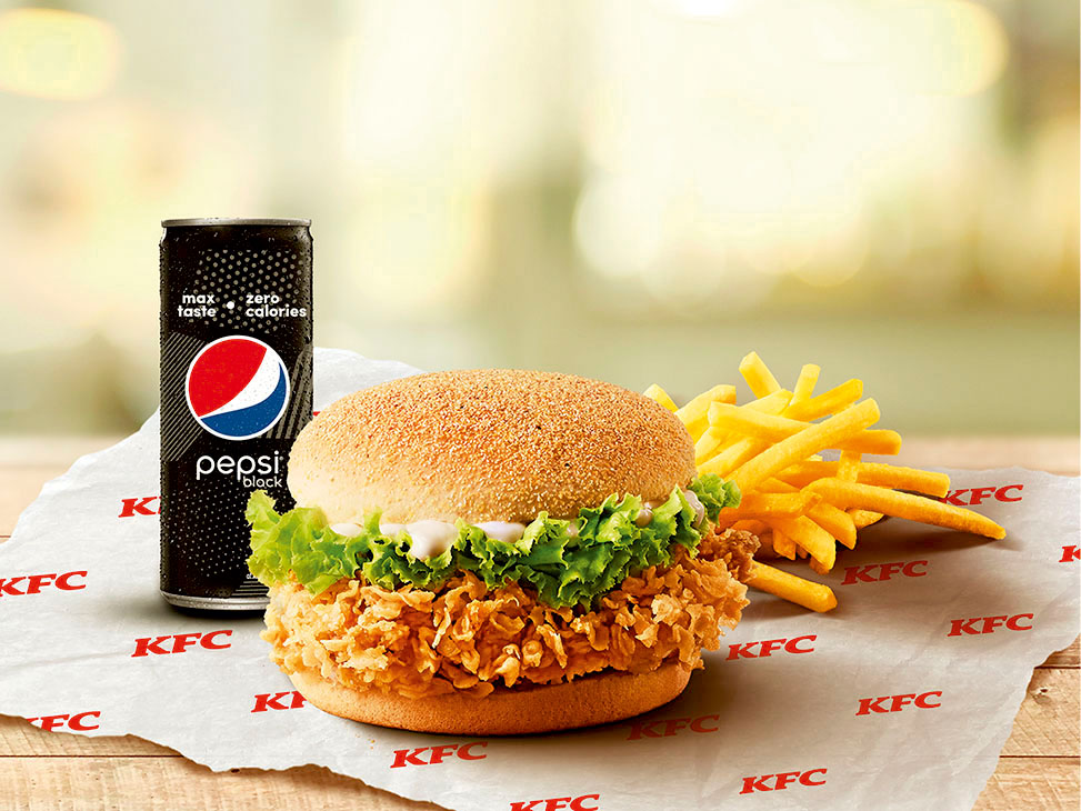Favorite combo of Classic Zinger Burger, Medium Fries & a chilled Pepsi Black [serves 1]