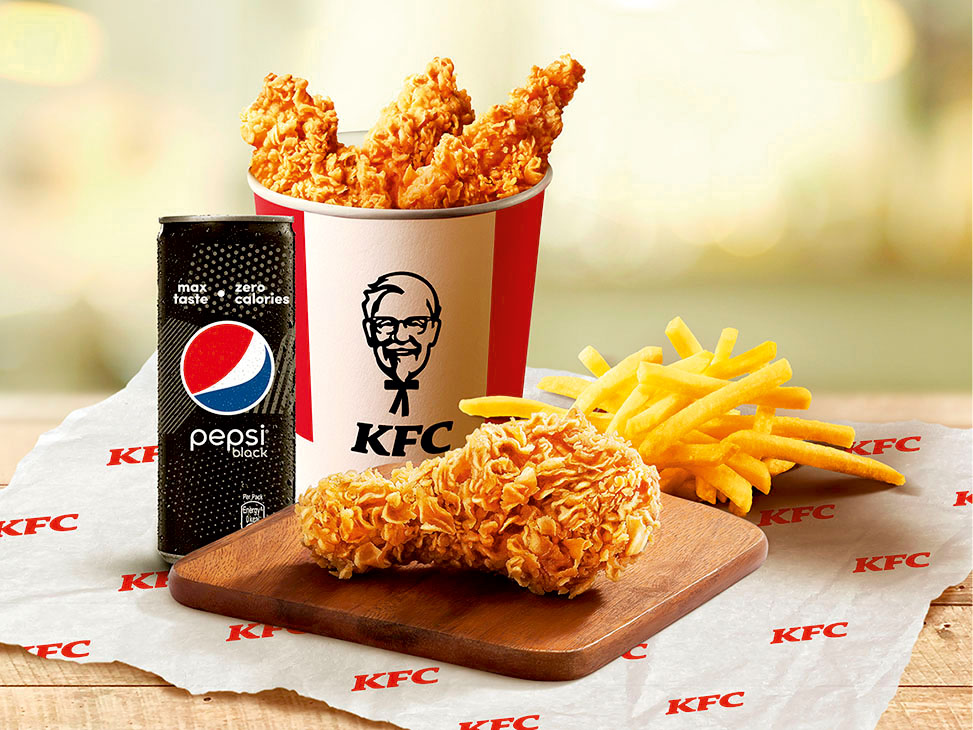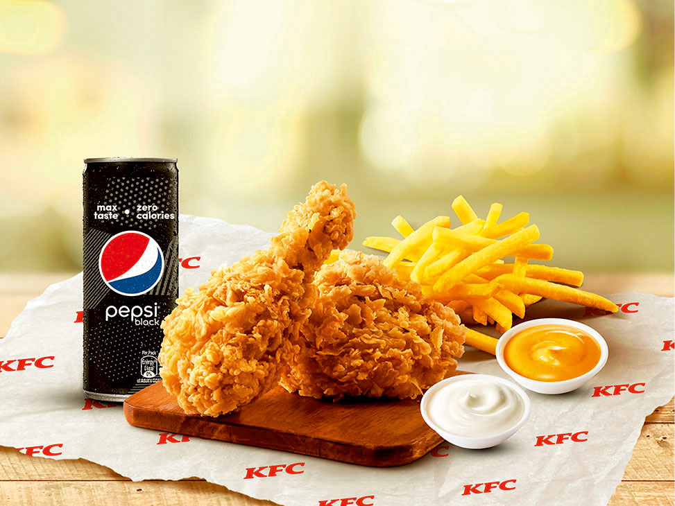 Try this classic pairing of 2pc Hot & Crispy, Medium Fries, 2 Dips & a chilled Pepsi Black [serves 1]