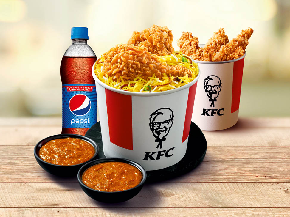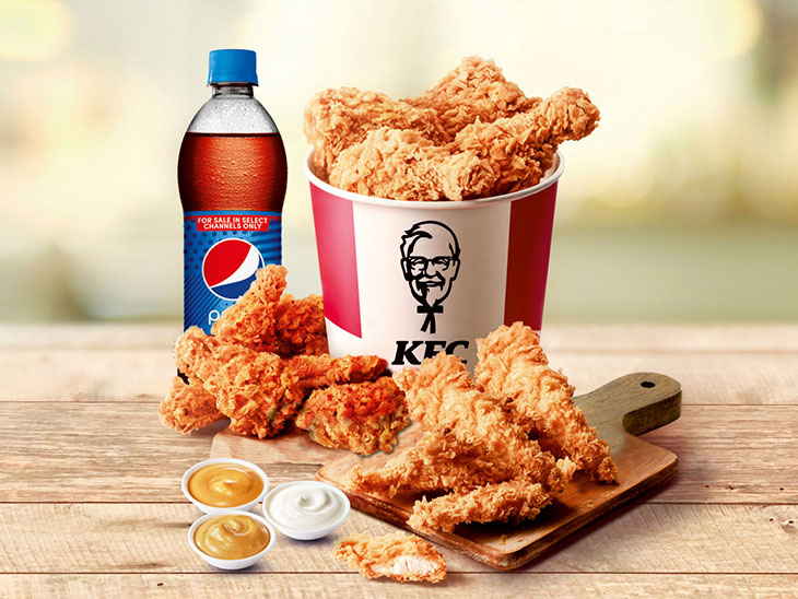 Save 35% on signature bucket of 4pc Hot & crispy, 6 Wings, 4 strips, 3 Dips & Pepsi PET [serves 2-3 ]