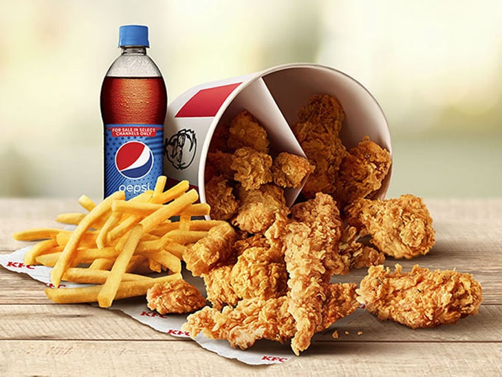 Enjoy 4 Hot & Crispy Chicken, 4 Strips, Medium Popcorn & Pepsi PET - save Rs. 79 [serves 2-3]