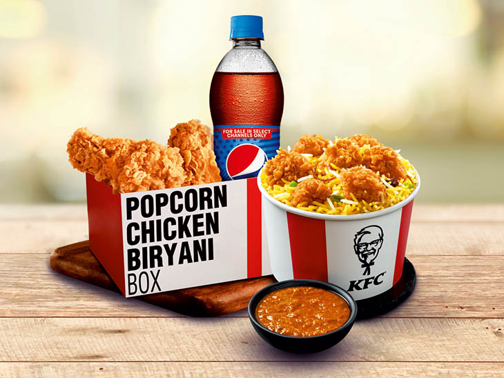 Biryani lovers unite : Get 1 Popcorn Biryani Bucket with gravy, 2 Hot Wings & Pepsi